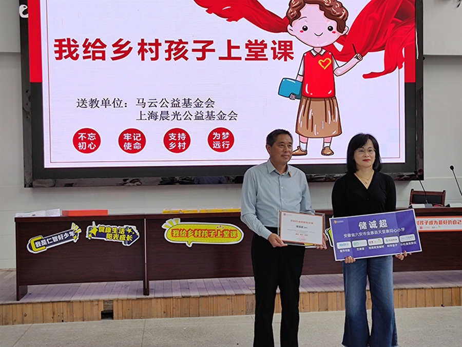 9月14日,上海晨光公益基金會(huì)一行前往安徽省金寨縣天堂寨同心小學(xué)向入選馬云鄉(xiāng)村校長計(jì)劃的儲(chǔ)誠超校長送上一份大驚喜,同心小學(xué)是一所半寄宿制學(xué)校,學(xué)校身處金寨山中,儲(chǔ)校長多年來奉獻(xiàn)鄉(xiāng)村教育,積極為孩子爭取優(yōu)質(zhì)的教育資源,讓孩子得以看見大山以外的世界,其優(yōu)秀的教學(xué)理念與做法讓他獲得了2021年度馬云鄉(xiāng)村校長計(jì)劃。